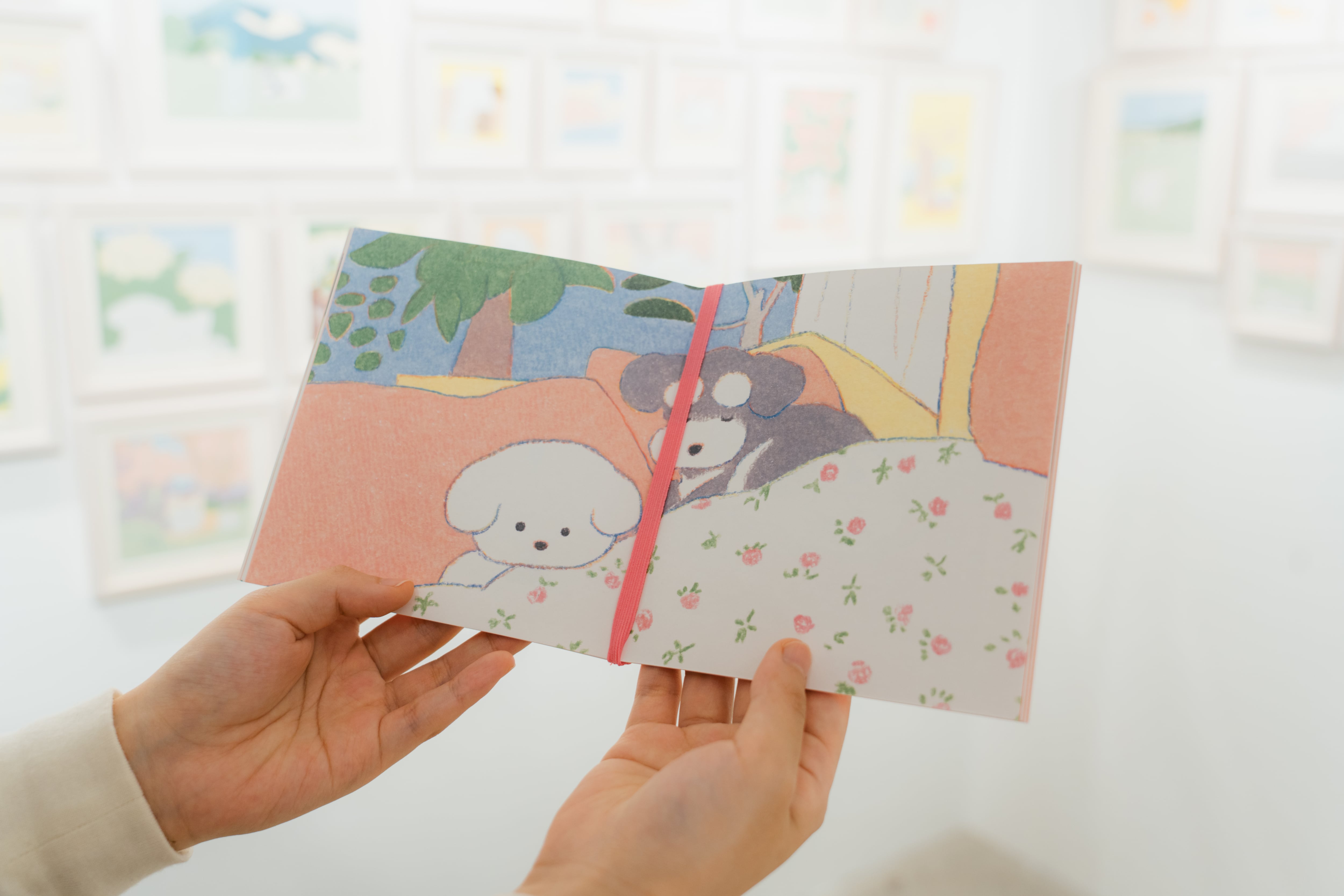 写真は2025年5月15日~5月29日まで東京駅VINYL GALLERYで開催された”てらおかなつみ Solo Exhibition「犬と風景の絵展」”で撮影させていただきました。